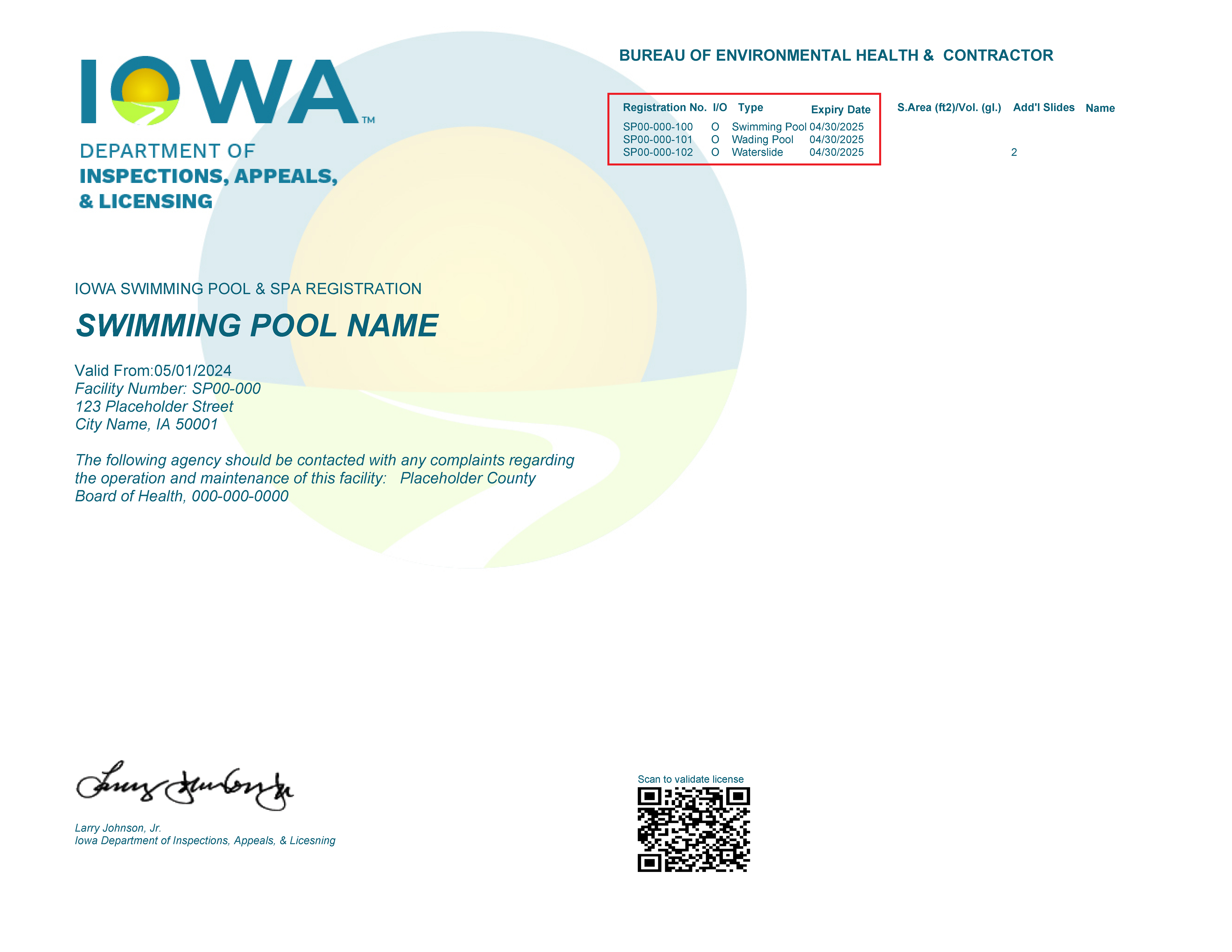 Each year, the Iowa Department of Inspections, Appeals, and Licenses (DIAL) Swimming Pools and Spas Program registers about 1400 aquatic facility locations in Iowa.